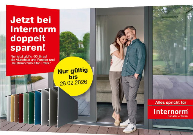 50 % Rabatt auf die Aluminiumschale bei den Produkten KF 310, KF 410 und KS 430 und parallel gibt´s im neuen Jahr alle Fenster und Haustüren noch zum alten Preis bis zum 28.02.2026!Schnell sein lohnt sich also doppelt!